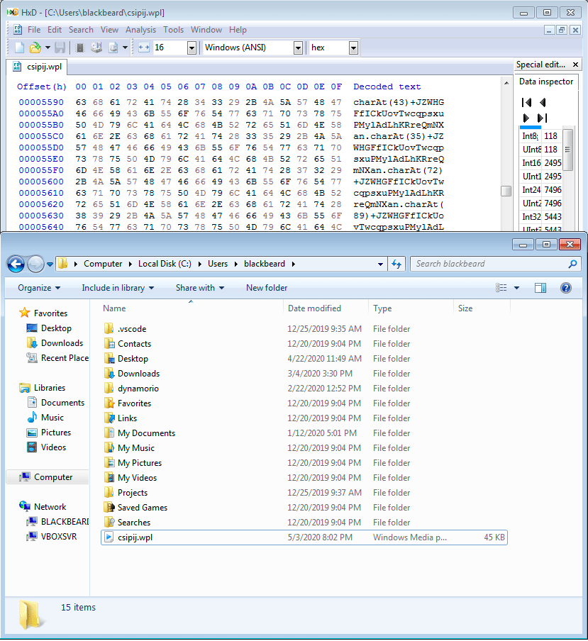 It tries to masquerade itself as a WPL file in the user’s folder.